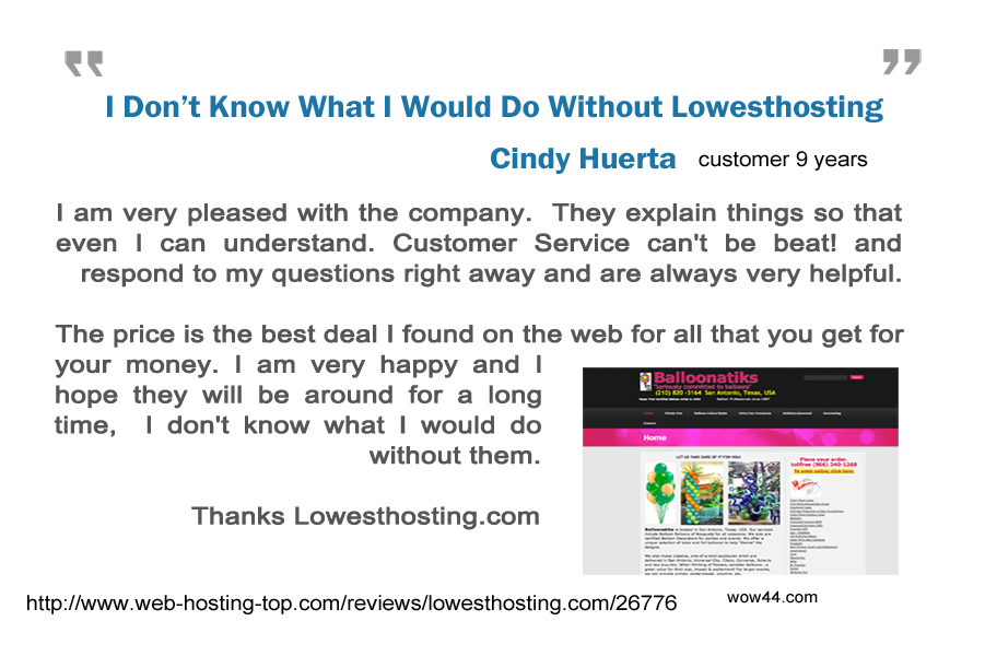 Lowesthosting.com began in 2000 as one of the Internet's premier discount web hosts. Our background started in telecommunications so we know technology and our longevity is testament to our quality customer service, low pricing, stable servers and sustainable debt free business model.
