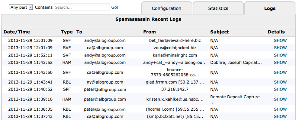 This innovation allows you to view all email received by your server so you can verify if email was sent to you and when it was accepted or if rejected and the reason and source details. No more guessing if someone sent you email or why you didn't get it.