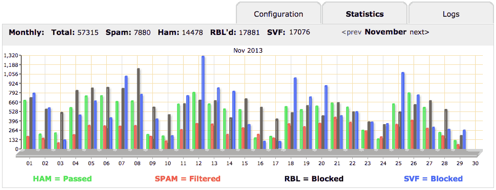 Use the inbound mail statistics let you gauge how effective your spam filter settings are set.